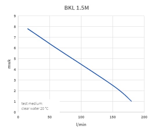 Die BKL 1.5M kann maximal 180 l/min (10,8 m³/h) fördern und hat eine maximale Förderhöhe von ca. 7,8 mWoche.