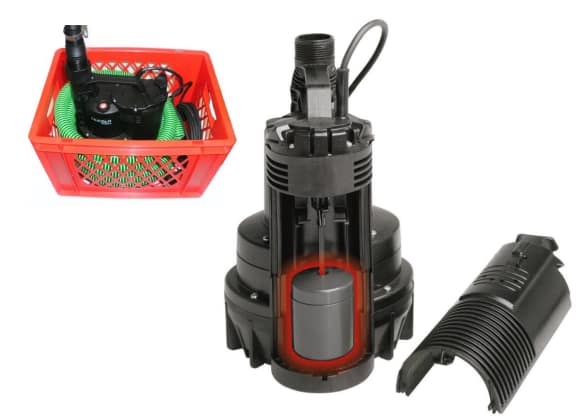 Der Schwimmer kann manuell ausgeschaltet werden, anschließend pumpt die Pumpe das Wasser bis auf wenige Millimeter unter den Boden.
