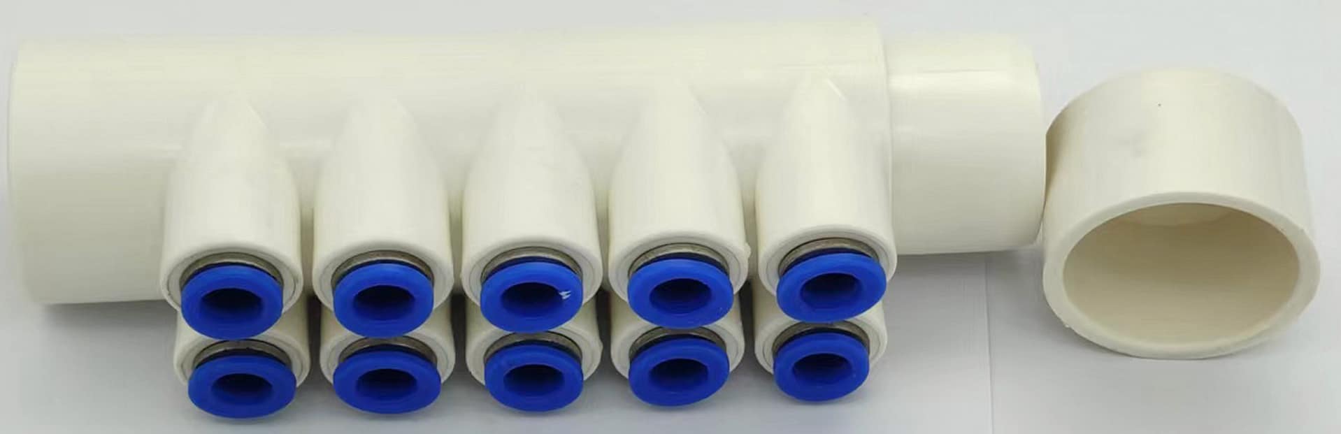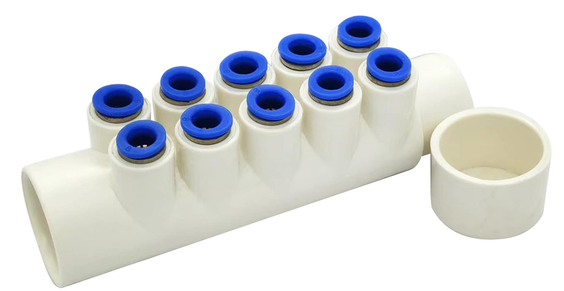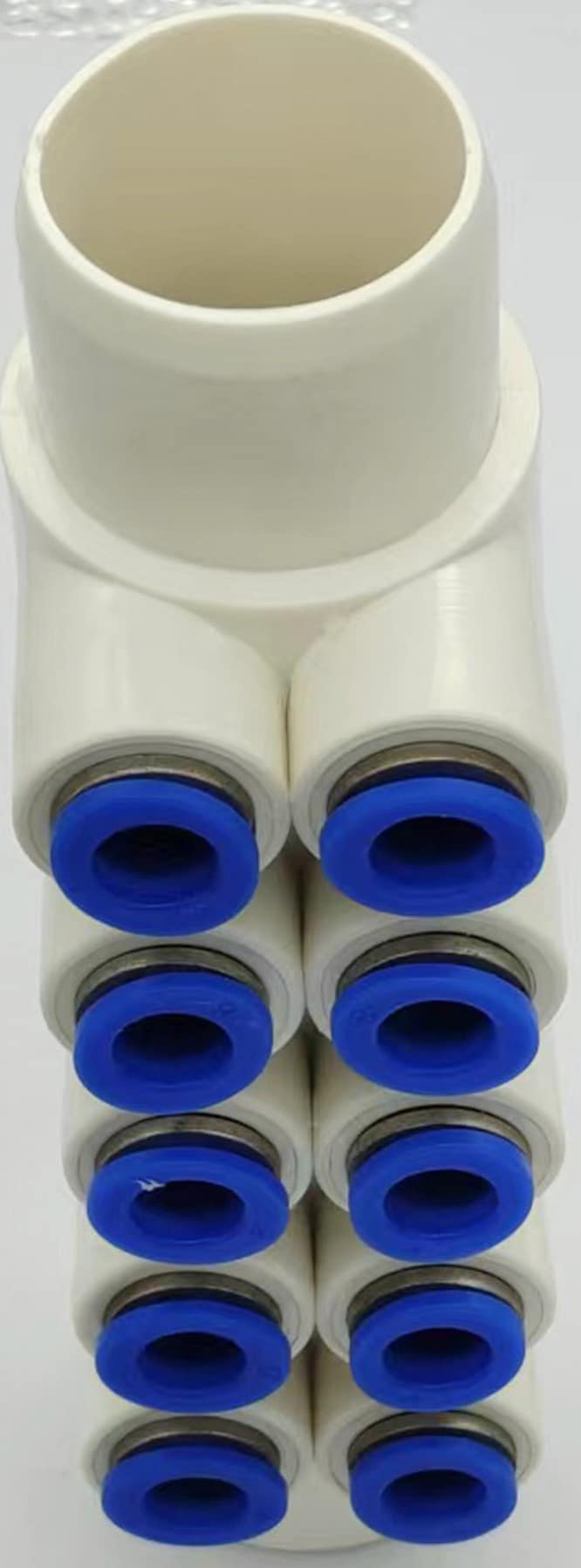 Technische Daten: Material: PVC, 10 Ausgänge, geeignet für 10 Düsen, Einlass für 10-mm-Luftschlauch, glatte Oberfläche
