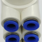 Der Verteiler hat 10 Anschlüsse für 10 mm PU-Schlauch.